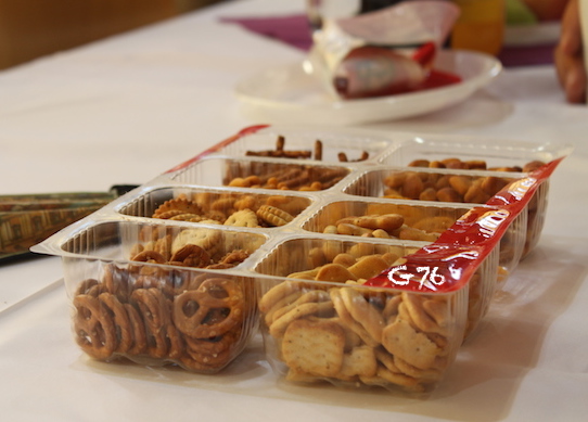 Ayam goreng, roti dan salat dibagikan pukul 20.30.
