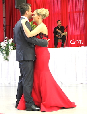Pasangan pengantin menari. Biasanya lampu dimatikan dan lilin dinyalakan untuk menambah suasana romantis saat mereka berdansa. Tapi tidak tahu ya, kok itu tidak, barangkali lupa. Lilin tetap utuh di meja. Tak berapa lama, para tamu menyusul menari. Dan lantai dansa pun penuh.